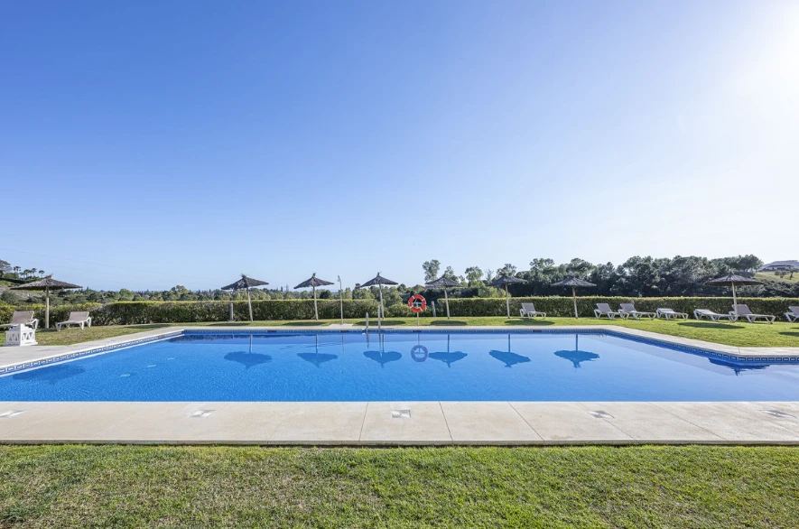 The property includes a private garage space and storage room. The community offers swimming pools for adults and children, well-maintained gardens and a secure environment all year round.